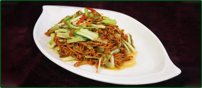 4.下入虫草花,.下入尖椒丝,少许盐炒匀出锅。
